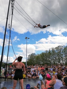 Portées par les stéréotypes de genre, utilisant leur corps, leur voix, leur fantaisie, deux jeunes femmes s’affirment et s’interrogent sur leur place de femme dans la société. Mêlant l’acrobatie, la poésie et le trapèze ballant, ce spectacle joue avec les clichés toujours avec humour !