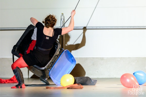 Irène, secrétaire pétillante mais légèrement désordonnée se révèle tour à tour danseuse, acrobate et dresseuse de poubelle.
