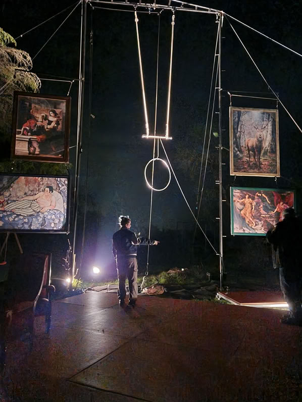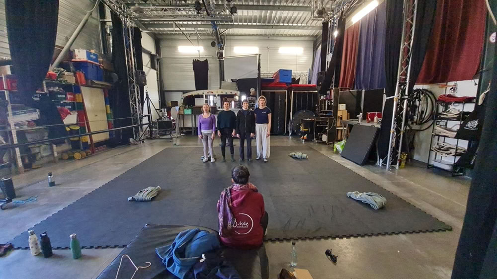 Et bien certain·e·s travaillent avec d’autres compagnies, Nathalie est par exemple en tournée avec Circus Cirkör. D’autres comme Paul, travaillent au mois de décembre avec Paillettes dans des évènements autour de Noël. D’autres encore préparent déjà la tournée et l’organisation pour 2026 en imaginant un fonctionnement et une vie de tournée en évolution. Enfin, Flora reprend du service tout doucement car elle sera de nouveau avec l’équipe en 2026 après son congé maternité.